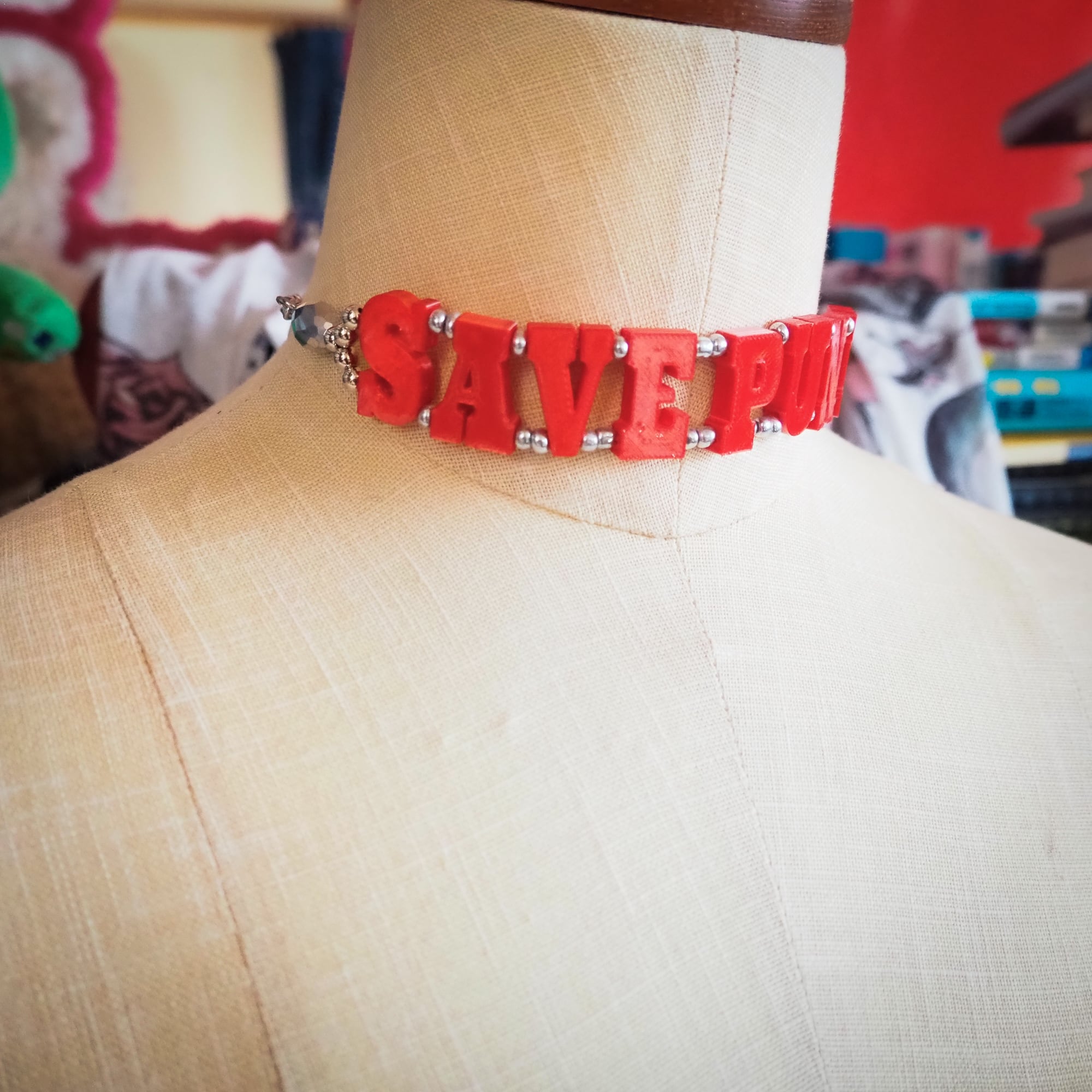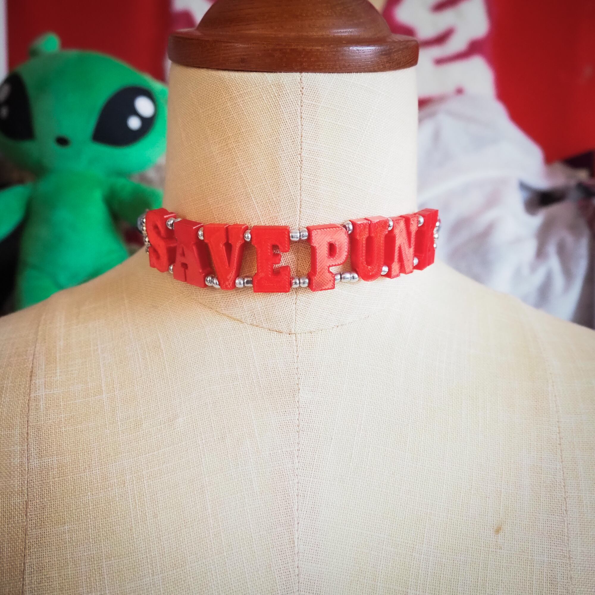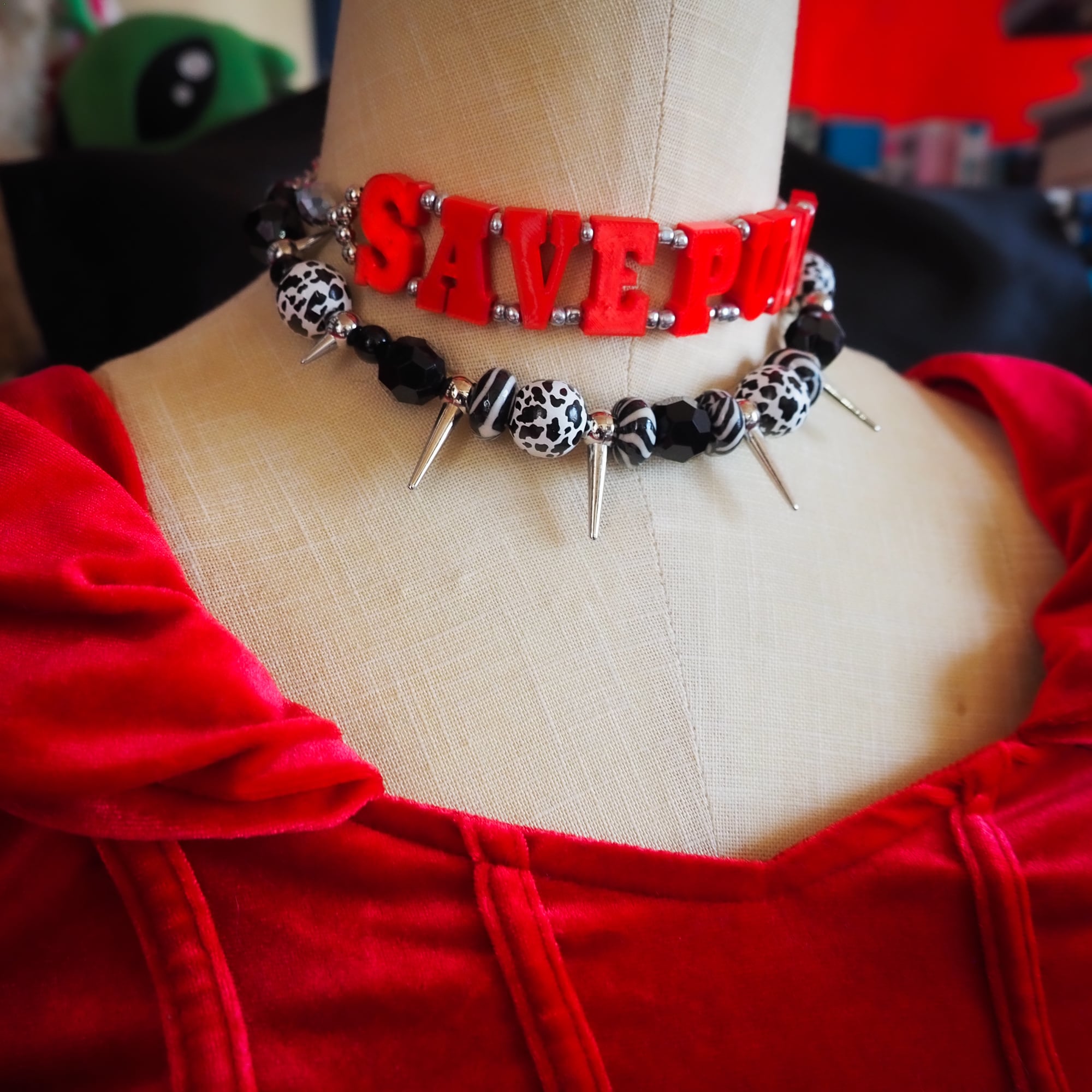 Teddy save punk choker / red